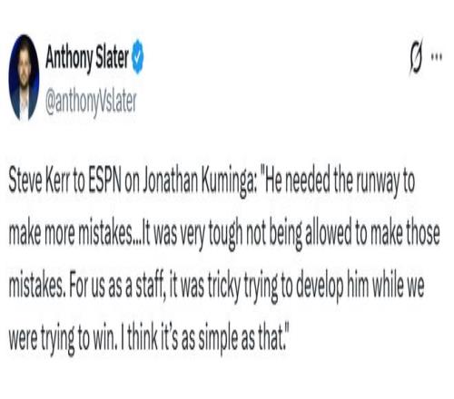 “我覺(jué)得對(duì)所有人來(lái)說(shuō),這都是一個(gè)艱難的處境,”科爾說(shuō)道,“他剛來(lái)時(shí)技術(shù)非常粗糙,而我們當(dāng)時(shí)仍在全力沖擊總冠軍。他需要足夠的空間去犯錯(cuò),需要在 NBA 賽場(chǎng)積累經(jīng)驗(yàn),去真正理解這個(gè)聯(lián)盟的內(nèi)涵。對(duì)他而言,不被允許犯錯(cuò)的滋味很難熬;對(duì)我們教練組來(lái)說(shuō),一邊要爭(zhēng)冠,一邊還要培養(yǎng)他,這也很棘手。事情就是這么簡(jiǎn)單。”