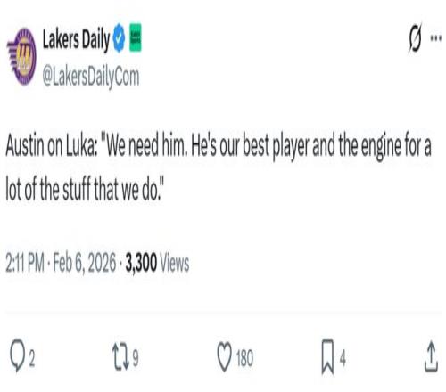 賽后湖人主帥雷迪克被問到相關(guān)問題,他表示東契奇左腿筋有些酸痛,他與球隊醫(yī)療團隊一致認為東契奇無法重返賽場。