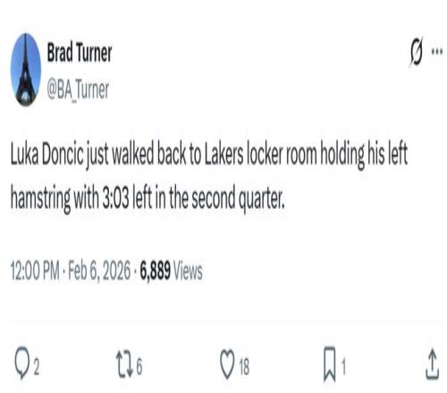湖人雖然拿下勝利,但核心東契奇因傷退場,在第二節(jié)一次進攻回合后,東契奇捂著自己的小腿退場,期間還踢了一下場邊的廣告牌看起來十分沮喪,隊記Brad Turner跟進曝出東契奇是左腿筋受傷。