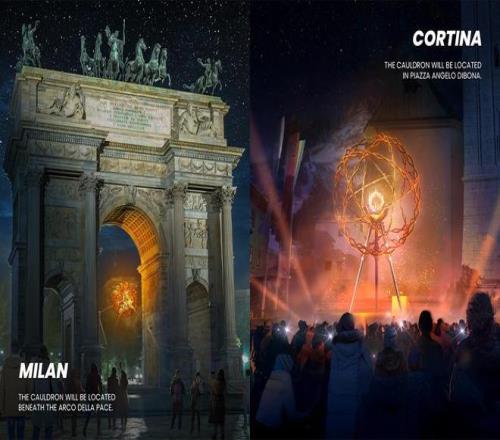 和北京冬奧會相似,本屆冬奧會也設(shè)置了多座火炬臺,準確來說是兩座,分別位于米蘭的和平拱門以及科爾蒂納丹佩佐的迪博納廣場,直接把主火炬臺安排在公共空間而非開幕式主場館,這和 2024 年巴黎奧運會的設(shè)定相似。