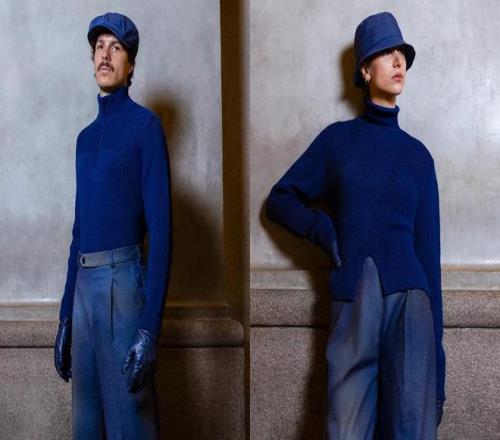 禮儀制服采用了本屆冬奧會視覺形象中主打的藍色調(diào),和頒獎臺的配色一致。帽子、針織衫、長褲、大翻領(lǐng)長款羽絨服、棕色戶外靴、藍色皮手套,整體簡潔優(yōu)雅,也強調(diào)實用性與舒適性,很體現(xiàn)優(yōu)雅的意式風格。