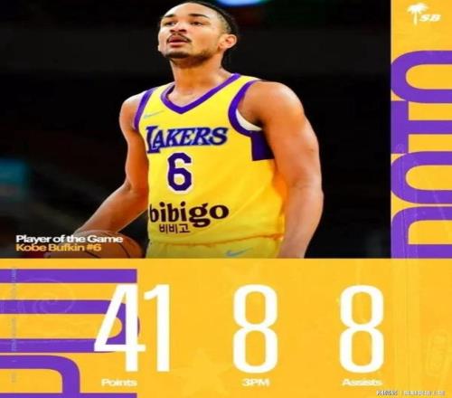 雖然科比巴夫金在NBA毫無建樹,但他在發(fā)展聯(lián)盟卻是大殺四方!四天前,在科比巴夫金代表南灣湖人對(duì)陣首都城市Go-Go的比賽里,他全場(chǎng)出戰(zhàn)40分鐘,17投11中,三分13中8,7罰6中,狂砍41分2板8助2斷。
