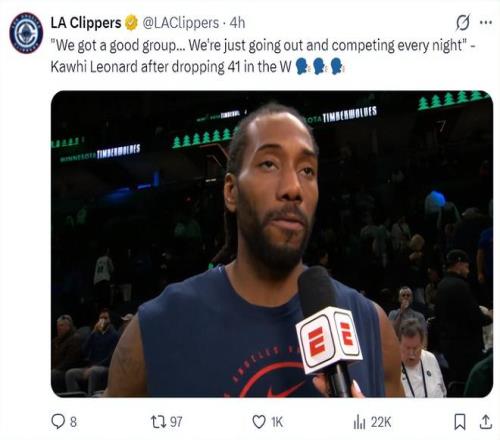 賽后倫納德接受采訪,他說道:我們是一支出色的球隊(duì),我們每一晚都為了勝利全力以赴去拼搏競(jìng)爭(zhēng),我們有一個(gè)目標(biāo)。