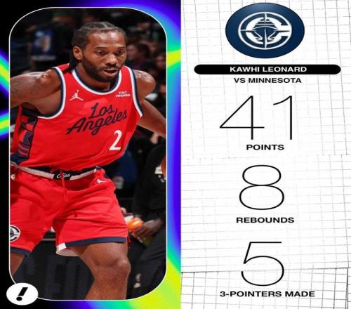 美中不足的是,倫納德在第四節(jié)剩下9分鐘前就已經(jīng)拿到了40分,但在那之后,倫納德連著投丟了4次運(yùn)動戰(zhàn)進(jìn)球和1記罰球——并不妨礙大勝的結(jié)果,只是如果能保持手感的話,這場倫納德說不定能打破生涯第二高分(目前是45分)。