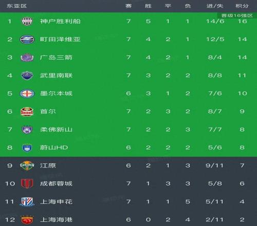 亞冠精英聯(lián)賽最新積分榜:蓉城01排第10,申花02提前出局