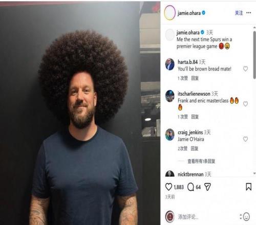 奧哈拉此前玩“蓄發(fā)哥”梗調(diào)侃熱刺不贏球,本輪熱刺又輸了
