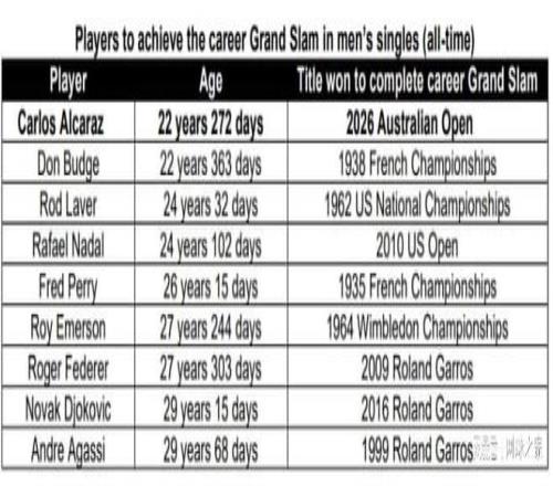 在以6-2搶下第一盤(pán)之后,38歲的德約科維奇被22歲的阿爾卡拉斯連扳三盤(pán)逆轉(zhuǎn)。德約科維奇25冠夢(mèng)碎的同時(shí),又催生了一項(xiàng)新的歷史紀(jì)錄——阿爾卡拉斯成為有史以來(lái)最年輕的全滿(mǎn)貫得主。