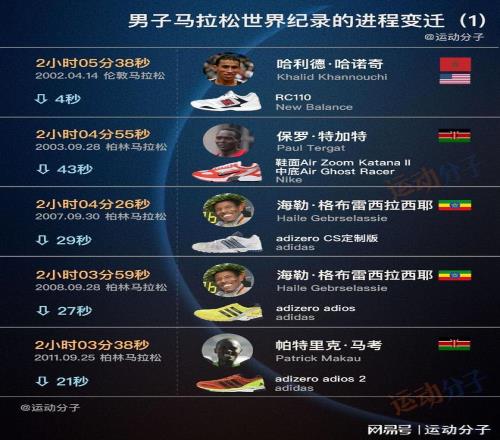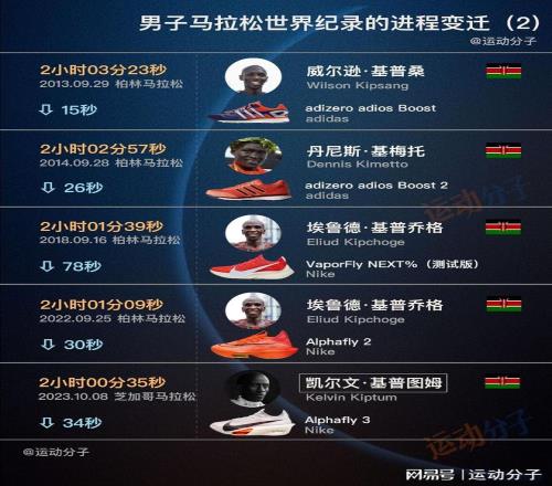 柏林對(duì)應(yīng)的關(guān)鍵詞,還有肯尼亞軍團(tuán)、adidas的adios系列等,帕特里克·馬考、威爾遜·基普桑、丹尼斯·基梅托,他們一步步推進(jìn)著耐力的極限。