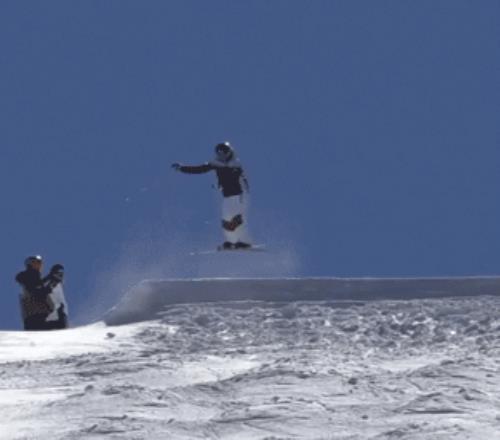 另外一個難點在于高速的回轉滑行狀態(tài)和起跳狀態(tài)的切換。從蘑菇田到跳臺的過渡距離大約三米,運動員要盡可能地提升速度,才能為跳躍積累足夠的高度。從50-70厘米高的跳臺飛出并完成高難度動作(如帶轉體的空翻)后,還要精準地落入緊隨其后的蘑菇田,立刻切換滑行模式,恢復回轉節(jié)奏。