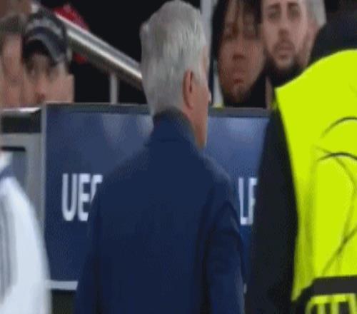 第85分鐘,威尼修斯回追,搶斷時(shí)放倒里奧斯,裁判并沒(méi)有向熊皇出示第二張黃牌,穆里尼奧極其不滿(mǎn),沖入場(chǎng)內(nèi)抗議,連吃?xún)蓮堻S牌被請(qǐng)上看臺(tái)。