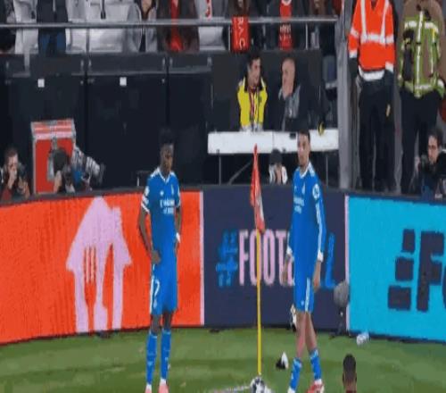 傷停補(bǔ)時(shí)一度來到102分鐘,維尼修斯在主罰角球時(shí),疑似被球迷拋擲的物品擊中。